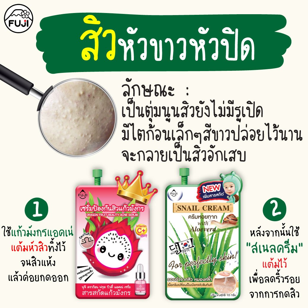 สิวหัวขาว หัวปิด (ฟูจิแก้วมังกรแอคเน่ + ฟูจิสเนลครีม)