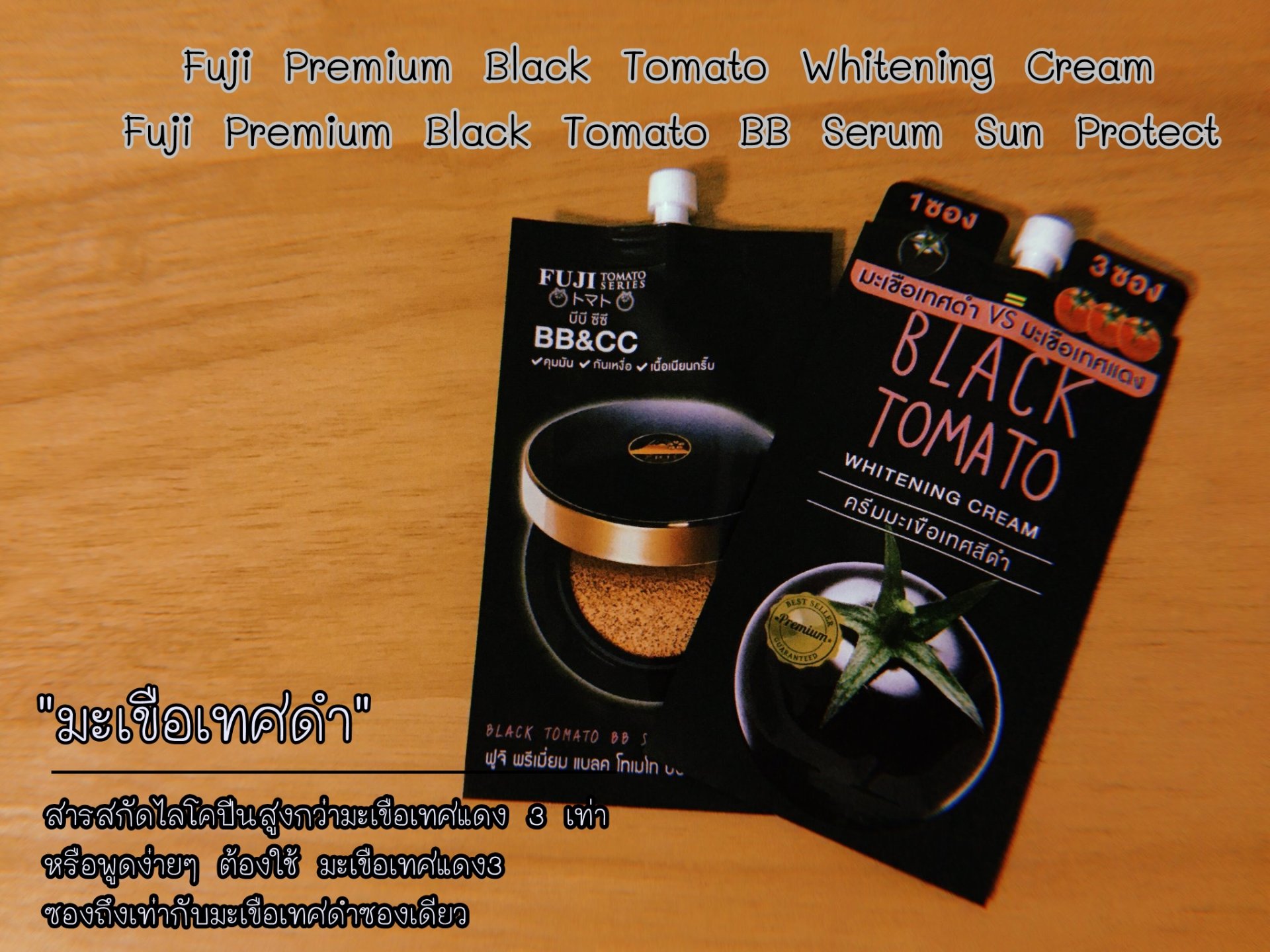 วันนี้มาลองผลิตภัณฑ์จากมะเขือเทศดำ มีทั้ง whitening cream และ BB&CC นั่นคือ Fuji Premium Black Tomato Whitening Cream และ Fuji Premium Black Tomato BB Serum Sun Protect นั่นเองงง บอกก่อนว่าเซ็ตผลิตภัณฑ์นี้ มีส่วนผสมของมะเขือเทศดำ ซึ่งมะเขือเทศดำ มีสารสกัดไลโคปีนสูงกว่ามะเขือเทศแดง 3 เท่า หรือพูดง่ายๆ ต้องใช้ มะเขือเทศแดง3 ซองถึงเท่ากับมะเขือเทศดำซองเดียว