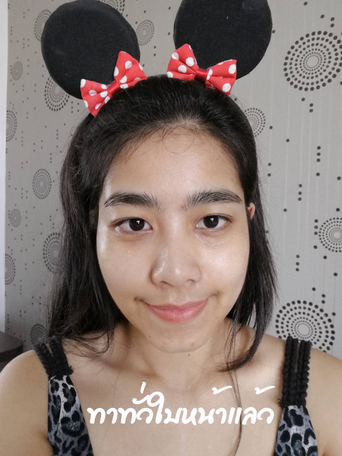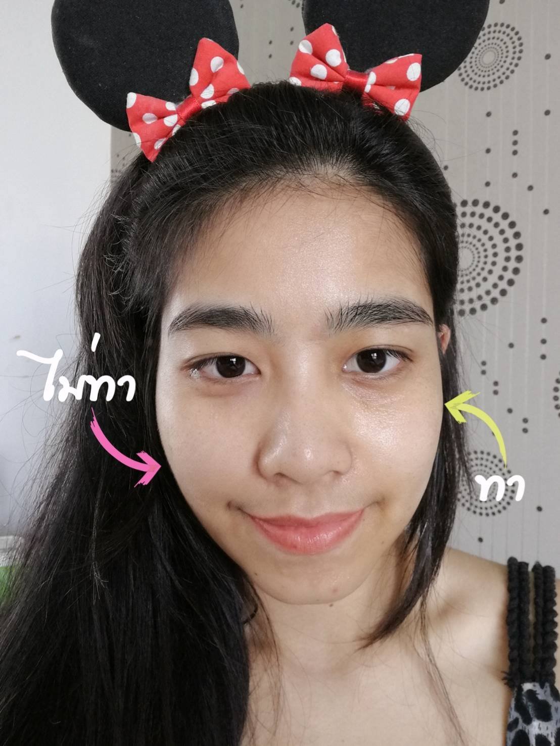 ทั่วหน้าคือ หน้าผาก จมูก แก้ม คาง จากนั้นเกลี่ยให้ทั่วใบหน้า